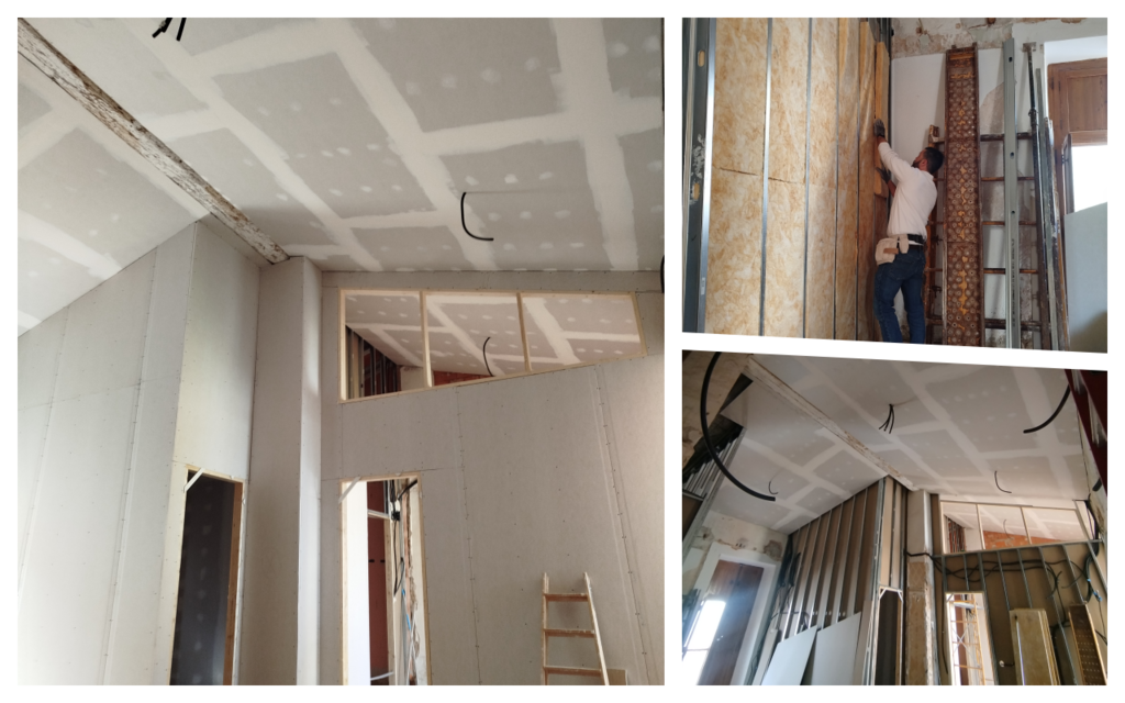 El espacio requerido será limitado utilizando perfiles maestra de diferente grosor los de 15mm o los de 30mm, quedando un pequeño espacio libre para instalaciones y un aislamiento mediante un material aislante que ocupe poco espacio como los aislantes de tipo reflexivo.