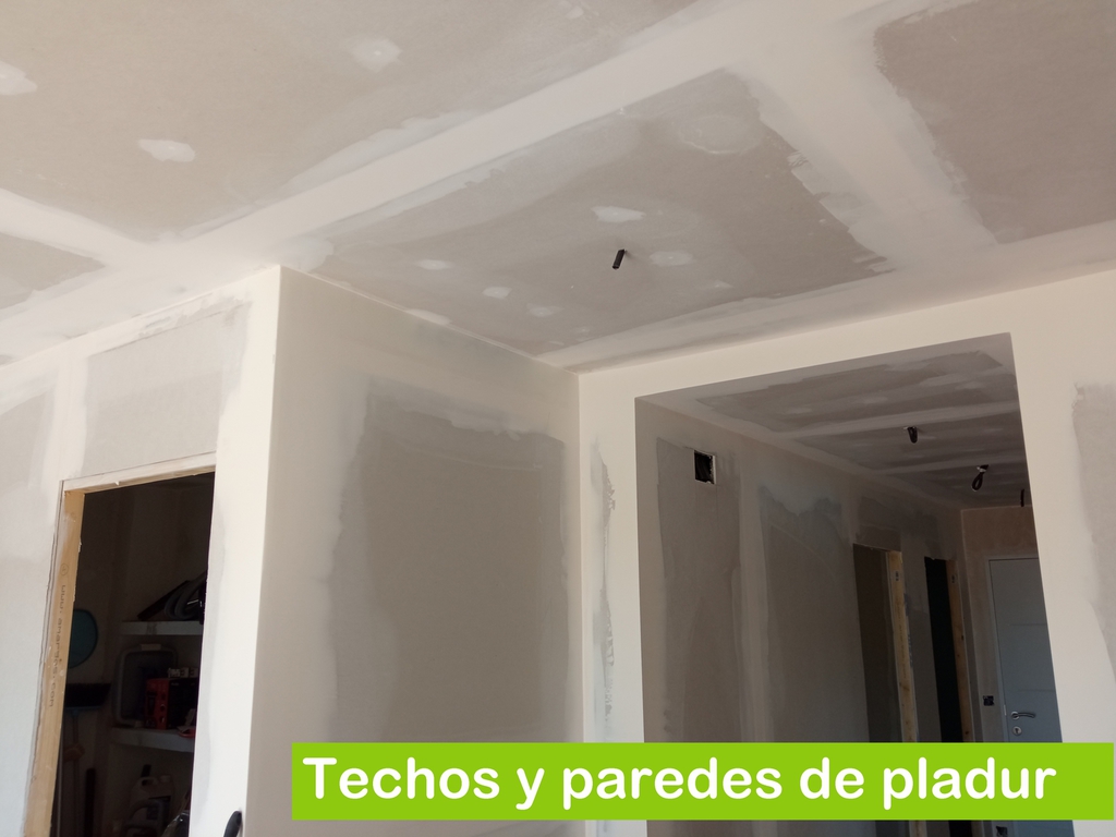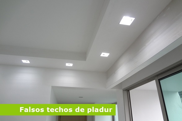 Los sistemas de falso techo con placa de yeso laminado Pladur® están compuestos principalmente por una estructura de metal a la que se fijan atornilladas las placas de yeso laminado, encintando sus juntas mediante una cinta de especial para juntas de placa y cubiertas con masilla de juntas para conseguir una superficie uniforme.