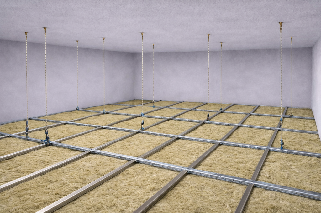 Principalmente podemos escoger entre 3 sistemas de falso techo de yeso laminado de diferente estructura dependiendo del espacio disponible y el nivel de aislamiento que requiera el proyecto.