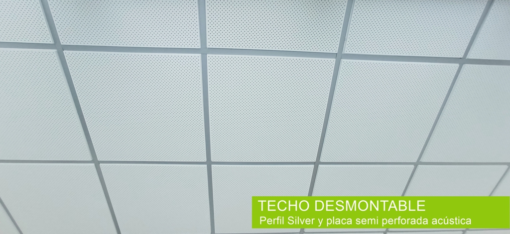 Es un tipo de falso techo compuesto generalmente por placas de 60cm por 60cm de material y terminación a elegir
